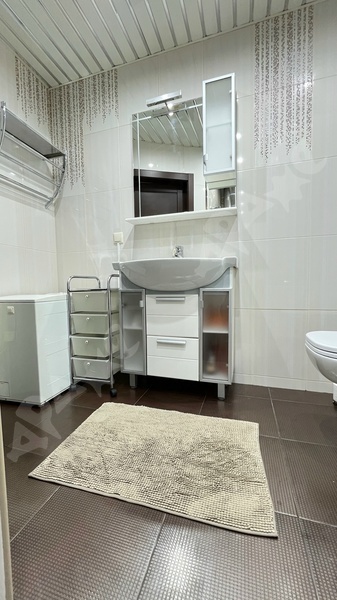 Санузел:ванная, туалет, раковина, стеллаж для хранения, полы с подогревом, водонагреватель