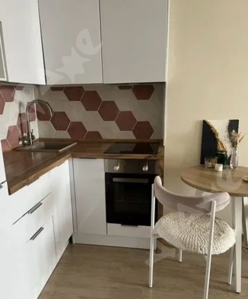 •Кухня и зал студия: кухонный гарнитур, водонагреватель, микроволновка,холодильник, посуда, электрический чайник, плита, посудомоечная машина, печка, барная стойка и 2 стула, большой телевизор, диван, журнальный стол, стеллаж, гладильная доска, утюг, беспроводной пылесос, увлажнитель воздуха