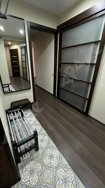 •В коридоре большой шкаф купе с зеркалами.