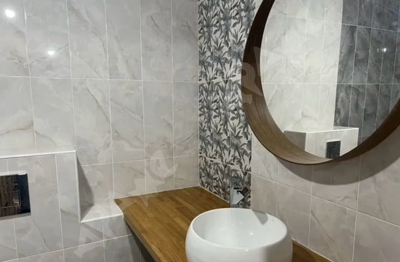 В квартире выполнен свежий евро ремонт. Просторная кухня площадью 9 м² оборудована необходимой техникой, включая холодильник. Из мебели установлены шкафы, диван и кровать. Санузел совмещенный, оформлен стильной плиткой.