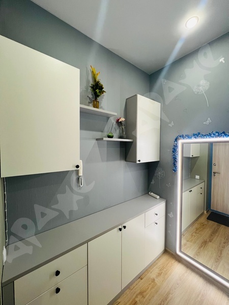 В коридоре большой 2х метровый шкаф для одежды, зеркало.