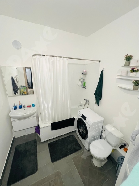 Вся мебель и техника имеется : кровать, тумба, шкаф для одежды , шторы , тюли, кухонный гарнитур, холодильник , микроволновая печь, индукционная плита , стол, стулья , прихожая, стиральная машина , ванные принадлежности