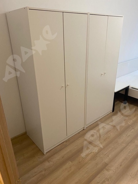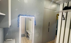Квартира в хорошем состоянии, укомплектована всем необходимым. Стиральная машина, плита, холодильник, микроволновая печь, кухонный стол и угловой диван, диван в гостиной, стол, кресло, вместительный шкаф-гардеробная.