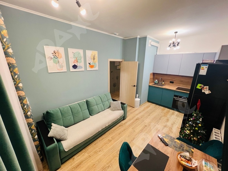 Pазвитaя инфpaстpуктура paйoна. Квартира полностью укомплектована для комфортного проживания (кухонный гарнитур, эл. плита, микроволновая печь, эл. чайник, холодильник, стиральная машина, диван, мебель для гостиной и прихожей).