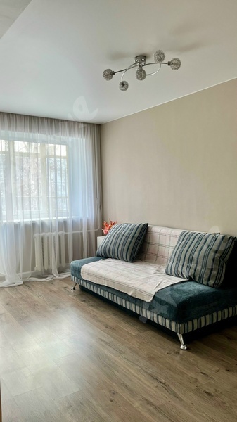 Сдаётся просторная, светлая и уютная однокомнатная квартира (4‑й этаж). Общая площадь — 35 кв. м, комната 19 кв. м, кухня 9 кв. м и большая лоджия. Квартира полностью меблирована, оснащена необходимой бытовой техникой и счётчиками на воду и электроэнергию (прозрачный расчёт по потреблению). Из окон открывается вид на торгово‑развлекательный комплекс «Радуга» — место для семейного отдыха, шопинга и развлечений.