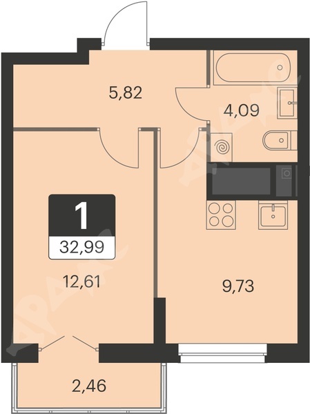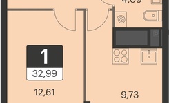 1-комнатная квартира (42 кВ м).