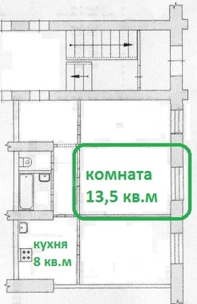 Комната 19 кВ, санузел общий.