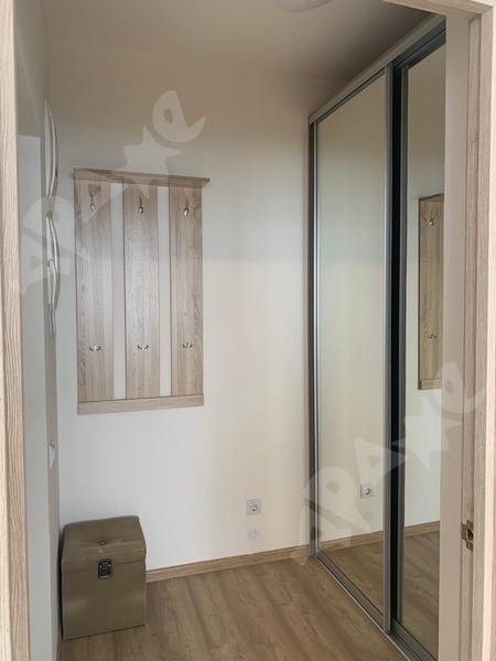 В квартире есть большая гардеробная, просторный балкон, кухня с гарнитуром, плита, стиралка, диван, столик, (если будет надо, привезу холодильник).
