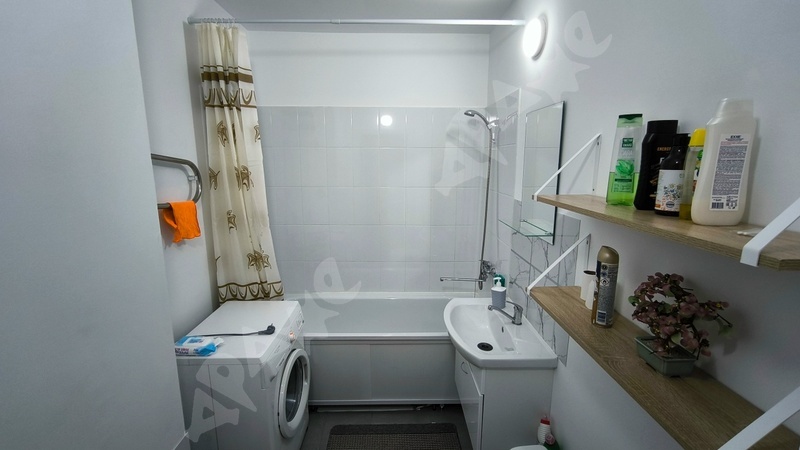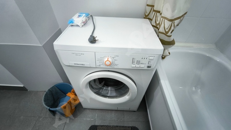 В ванной комнате находится стиральная машинка. Вся квартира чистая и ухоженная, здесь всегда приятно проводить время.