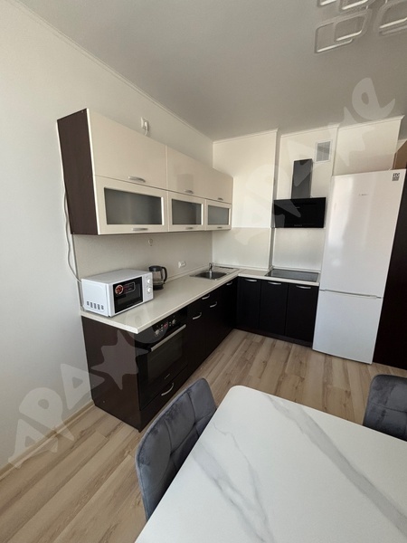 Техника: варочная панель, духовой шкаф, вытяжка, холодильник, микроволновка, телевизор, стиральная машина. Пол тёплый.