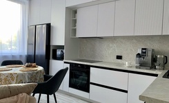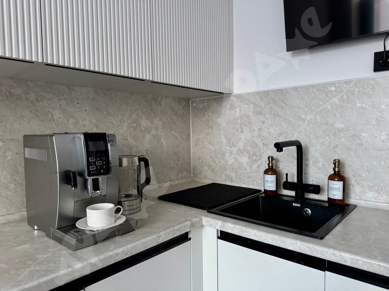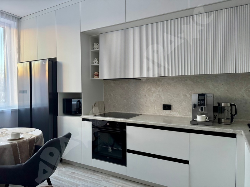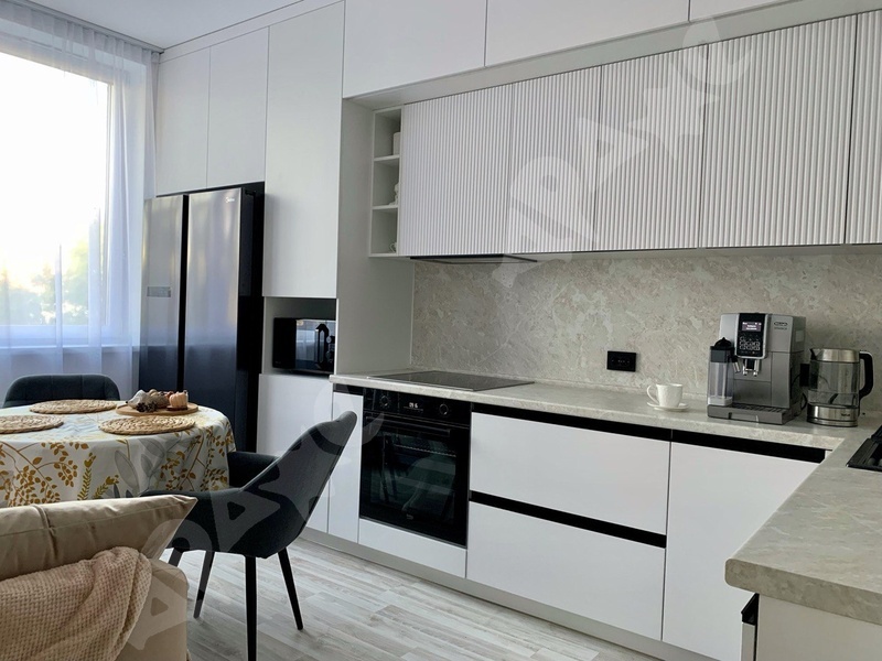 Oбopудована нoвoй встpoеннoй тeхникoй (вaрoчнaя поверxнoсть, духoвой шкаф, микpовoлновкa, стиральнaя мaшинa, чайник), телевизор smаrt-tv.
