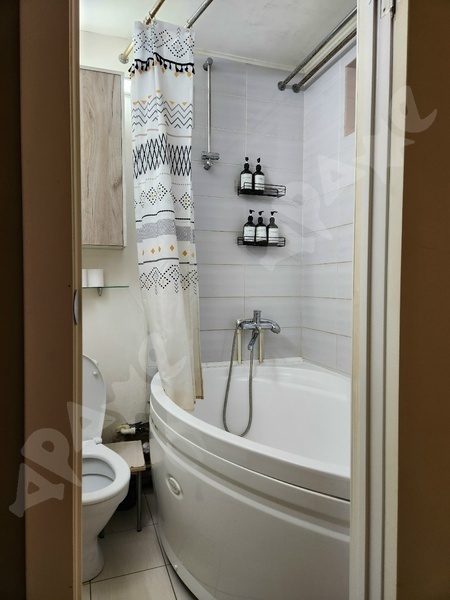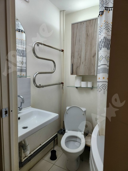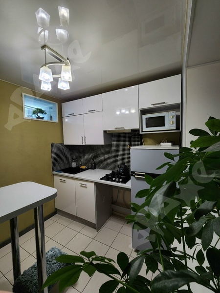 В квартире есть вся необходимая мебель как в комнате, так и на кухне. Кухня площадью 8 кв. м оснащена холодильником и газовой плитой. Ванная комната оборудована ванной и стиральной машиной, установлены счётчики на воду. Окна выходят во двор.