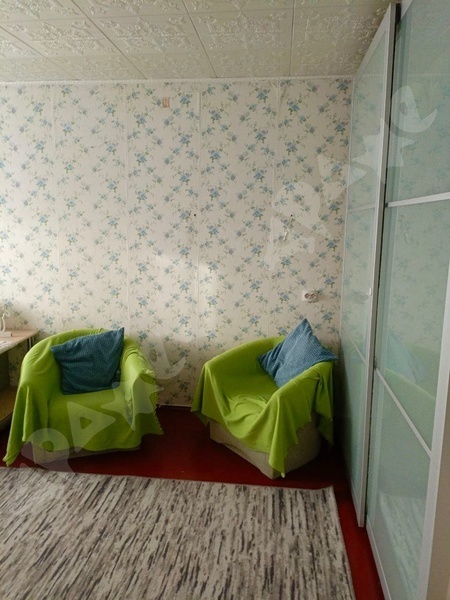Кухня площадью 6 м² оборудована необходимой техникой: холодильник, плита, микроволновая печь. Из мебели есть большой шкаф ikea и диван, два кресла. В комнате установлен телевизор smart tv и WiFi роутер.