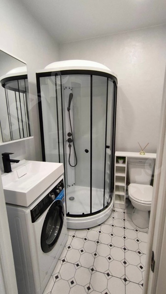 В квартире есть всё необходимое для комфортного проживания: удобная мебель на кухне и в комнате, а также вся необходимая техника — холодильник и стиральная машина. Санузел совмещённый, установлен современный душ.