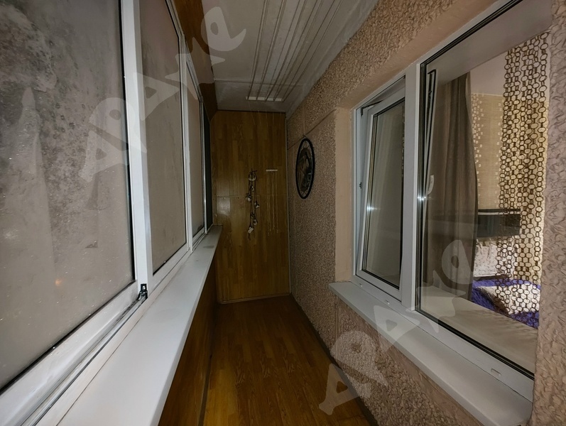 В ванной стиральная машина. Из комнаты большая лоджия на всю длину квартиры.