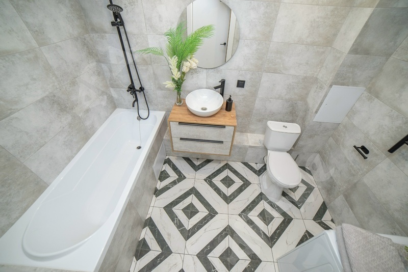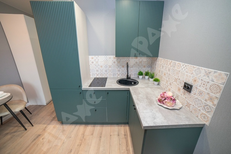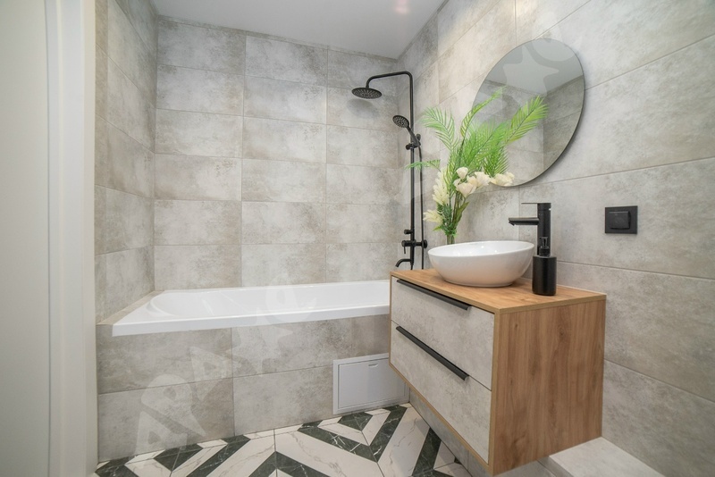 В квартире сделан качественный ремонт, санузел в плитке, кухонный гарнитур с раковиной и варочной поверхность, вытяжка, холодильник.