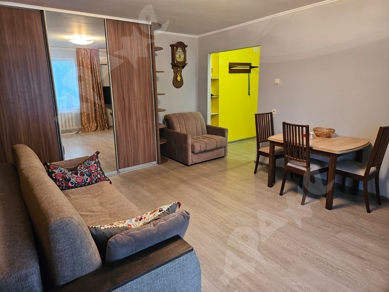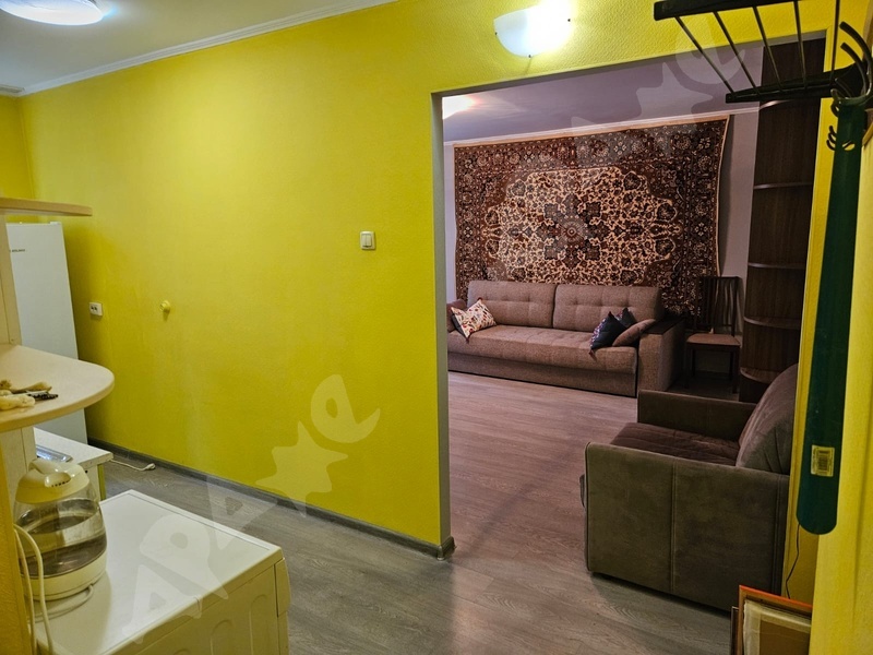 напротив 6 поликлиники. Общая площадь 42,9 кв. Туалет и ванна раздельные, застекленный балкон. Окна пластиковые. Комнаты изолированные. Имеется все необходимое для жизни (два шкафа купе, холодильник, стиральная машина, два дивана, стол деревянный обеденный, три стула, раскладное кресло, кондиционер, газовая плита, гладильная доска, утюг, посуда). Интерьер на фото.