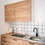 Кухня, плита, душевая кабина, система хранения вещей, стол, стулья.
