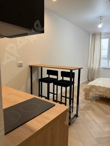 Сдается на длительный срок новая, со свежим ремонтом и мебелью квартира-студия в современном районе. Квартиру изначально планировали сдавать посуточно, поэтому есть все и даже больше: фен, банные полотенца, постельное белье,утюг, посуда, столовые приборы, бокалы,стаканы на 4 персоны,новая сковородка ,кастрюля ,новое ведро швабра .В квартире есть вся необходимая техника: холодильник, микроволновая печь, чайник, смарт-ТВ, стиральная машина, фен,