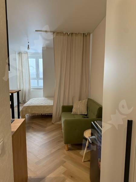 Есть вся необходимая мебель и техника: кровать с хорошим ортопедическим матрасом, вместительный шкаф, обеденный стол, стулья, холодильник, варочная поверхность с духовым шкафом. Шторы блэкаут. В ванной и коридоре теплый пол.