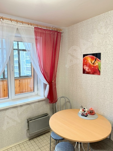Площадь квартиры 33,2 кв.м., этаж 4, есть застекленный балкон. Санузел раздельный, окна пластик, выходят во двор (на детскую площадку), из мебели: раскладной диван, 2 вместительных шкафа купе, стенка-горка под технику, обеденный стол, стулья, табуретки. Из техники холодильник, микроволновка, электроплита, электрочайник, стиральная машина, посуда. Закрытый двор, шлагбаум и огромная детская площадка.