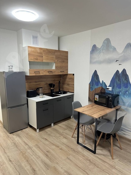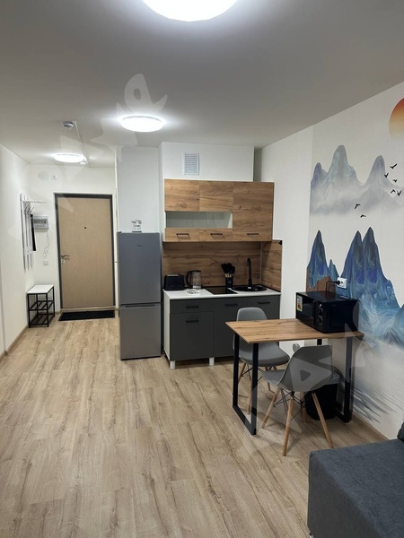 Сдается на длительный срок новая, со свежим ремонтом и мебелью квартира-студия в современном районе. Квартиру изначально планировали сдавать посуточно, поэтому есть все и даже больше: фен, банные полотенца, постельное белье,утюг, посуда, столовые приборы, бокалы,стаканы на 4 персоны,новая сковородка ,кастрюля ,новое ведро швабра .В квартире есть вся необходимая техника: холодильник, микроволновая печь, чайник, смарт-ТВ, стиральная машина, фен,