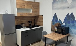 Сдается прекрасная студия, с атмосферой гор, озера и дерева, что делает ее очень уютной.