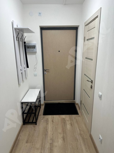 Есть вся необходимая мебель и техника: кровать с хорошим ортопедическим матрасом, вместительный шкаф, обеденный стол, стулья, холодильник, варочная поверхность с духовым шкафом. Шторы блэкаут. В ванной и коридоре теплый пол.