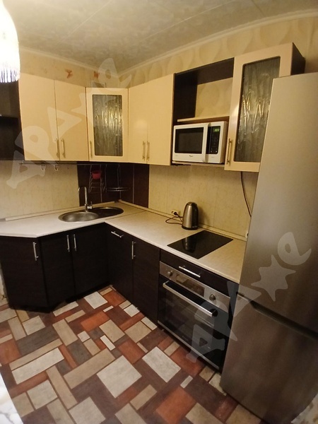 В квартире есть: Кухонный гарнитур, газ. плита, холодильник, стиральная машина, диван, шкафы.