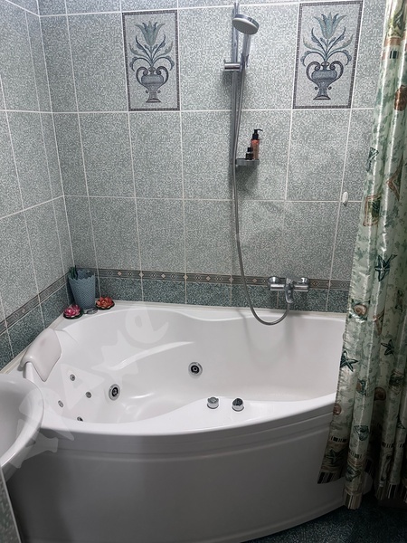 Лоджия застеклена и обустроена как дополнительное пространство для отдыха. Санузел совмещенный, выполнен в светлых тонах (установлена ванна-джакузи).