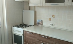 Двухкомнатная меблированная квартира 43 кв.м. с застеклённой лоджией на 4 этаже. Кухня с холодильником и газовой плитой, стиральной машиной. В зале раскладной диван и два кресла, мебельная стенка, раздвижной стол. Совмещённый туалет с раковиной и душевой кабиной. В маленькой комнате раскладной диван и односпальная кровать. Для граждан РФ. На длительный срок.