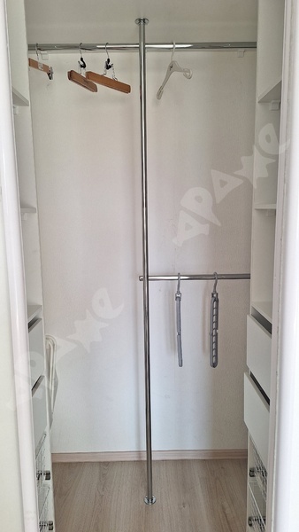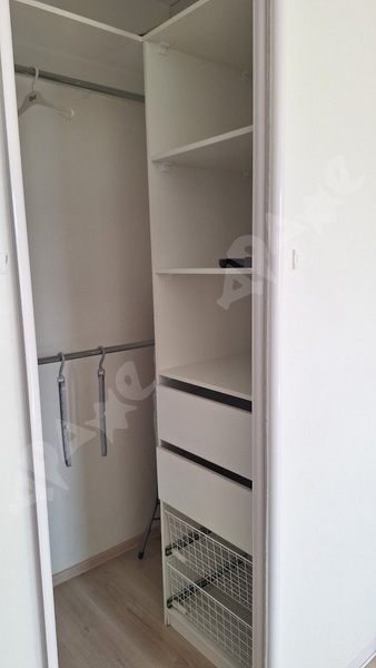 В гостиной гардероб (зонирован для двоих), диван, тв.