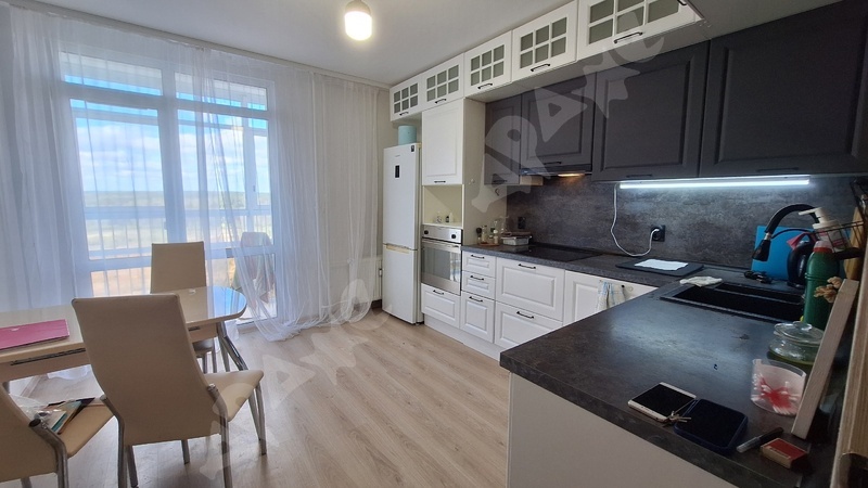 квартира 53 кв.м., кухня 10 кв.м. этаж 3/22, есть балкон. Дом панельный (новостройка), очень тёплый. Сан.узел совмещен ,ремонт как на фото. Окна пластик.
