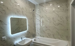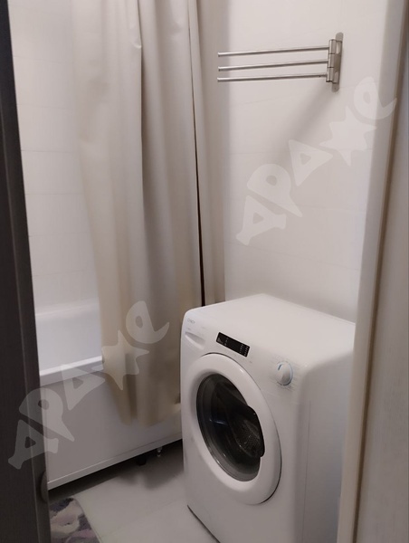 В ванной комнате есть стиральная машина, электрический полотенцесушитель, в просторной душевой кабине - многофункциональная душевая система.