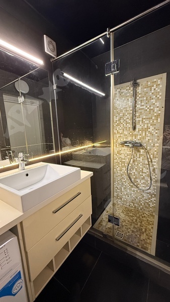 Дом 2025 года постройки, сдан в декабре. В квартире свежий ремонт и новая техника. Имеется варочная поверхность на 2 конфорки, духовой шкаф, холодильник, вытяжка, стиральная машина. Мест хранения достаточно: диван раскладной, имеет короб для хранения, под кроватью также есть короб, вместительный шкаф и комод в спальне. В квартире отдельная гардеробная.