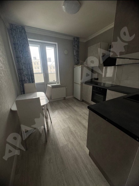 Площадь квартиры 38 кв. м., этаж 11/16. Из мебели кухонный гарнитур, холодильник, эл. плита (с духовкой), стиральная машина, обеденный стол со стульями, в комнате шкаф. Квартира сдается на длительный срок. В шаговой доступности остановки общественного транспорта и магазины. Территория дома огорожена, большая детская площадка.