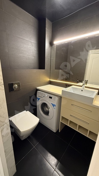 — Санузел совмещённый, стиральная машина.