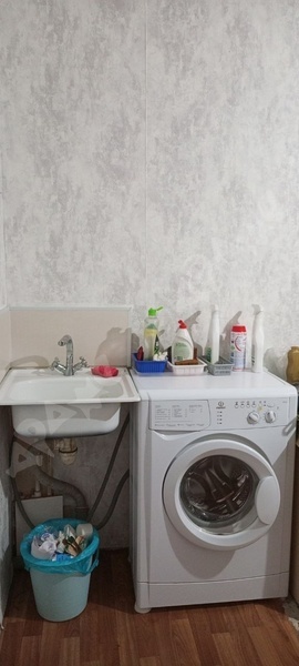 В комнате есть стиральная машина, холодильник,диван, шкаф, стол.