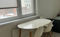 Сдается студия на длительный срок. Квартира светлая, с видом на парк. Есть все для комфортного проживания: холодильник, стиральная машина, микроволновая печь, духовка, плита, диван, кухонный гарнитур, обеденная зона, большой шкаф, комод.