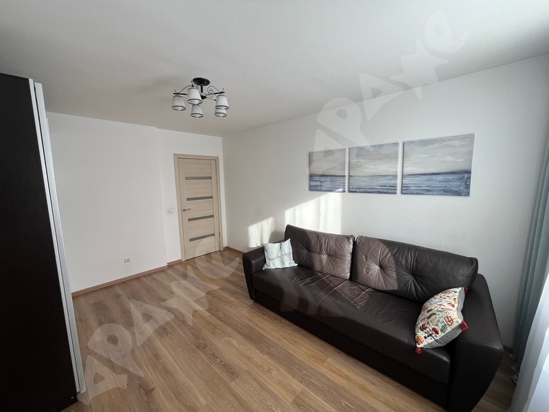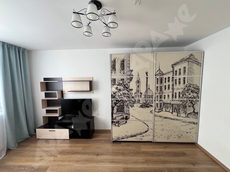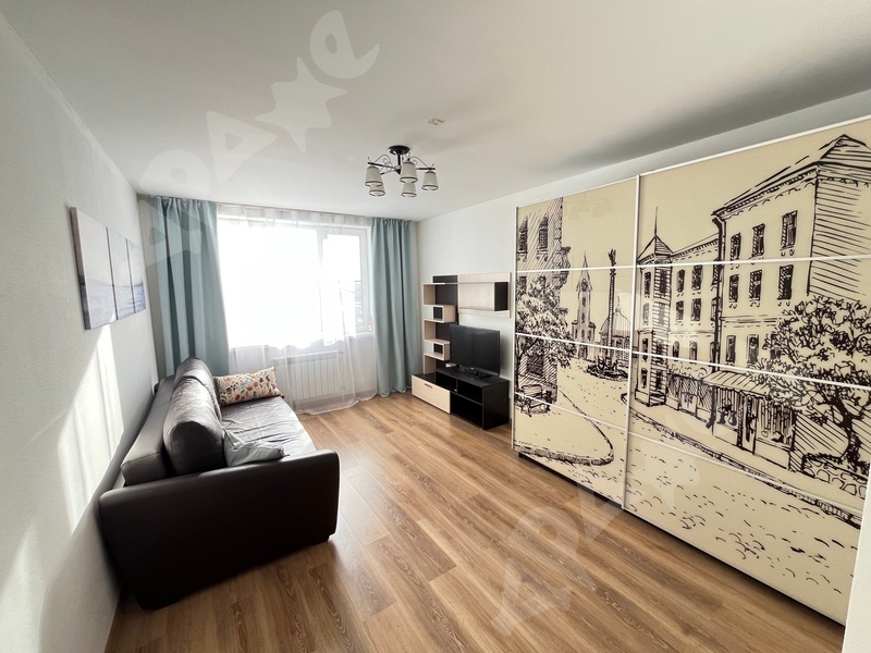 В квартире выполнен косметический ремонт, установлены шкафы и мебель для комфортного проживания. В комнате имеется удобный диван и письменный стол с креслом, а также шкаф для хранения вещей. Из мебели также предусмотрены вместительные шкафы в прихожей.