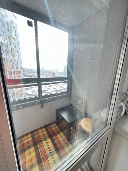 Балкон застеклен, во всей квартире пластиковые окна и натяжные потолки.