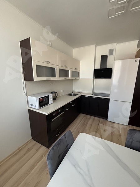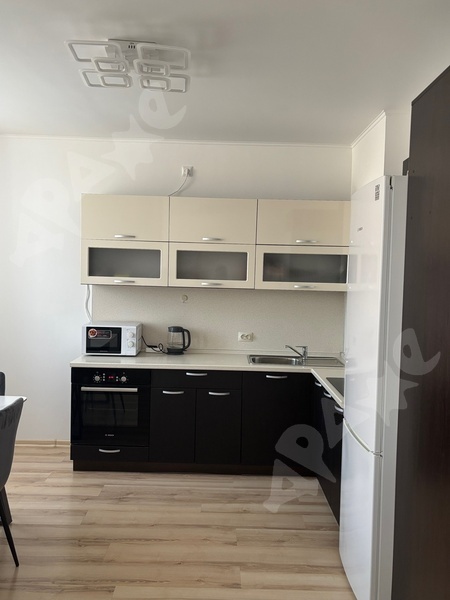 Ремонт сделан для себя, качественная кровать с матрасом, стол, стулья, шкаф, кухонная зона со всем необходимым – чайник, микроволновка, варочная поверхность, духовой шкаф, посудомоечная машина, пылесос. Стиральная машина, большой холодильник, кондиционер, в ванной комнате душевая зона и ванная. Большая лоджия.