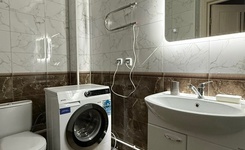 Имеется вся необходимая мебель для комфортного проживания ( 2 спальный кровать шкаф-гардероб, кухня, стол) и техника – эл.плитка, чайник, холодильник , стир. машина- автомат.