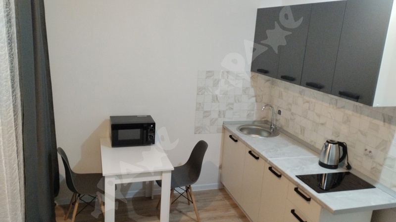 В квартире сделан качественный ремонт, санузел в плитке, кухонный гарнитур с раковиной и варочной поверхность, стиральная машина, пенал в ванной, холодильник, микроволновка, диван, шкаф, кухонный стол, кухонные стулья.