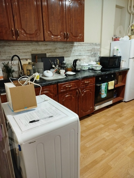Квартира на 13-м этаже, в подъезде консьерж, санузел смежный, ремонт косметический как на фото, из мебели есть двуспальная кровать, диван, 2 больших шкафа, кухонный гарнитур. Стол, стулья, из техники - стиральная и посудомоечная машина, холодильник.