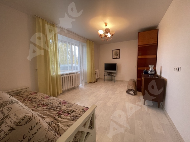 Двухкомнатная меблированная квартира 43 кв.м. с застеклённой лоджией на 4 этаже. Кухня с холодильником и газовой плитой, стиральной машиной. В зале раскладной диван и два кресла, мебельная стенка, раздвижной стол. Совмещённый туалет с раковиной и душевой кабиной. В маленькой комнате раскладной диван и односпальная кровать. Для граждан РФ. На длительный срок.