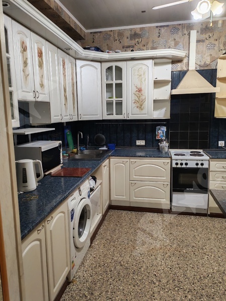 В квартире есть: Кухонный гарнитур, газ. плита, холодильник, стиральная машина, диван, шкафы.