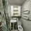 На первом этаже диван двуспальный, стеллаж с ячейками.