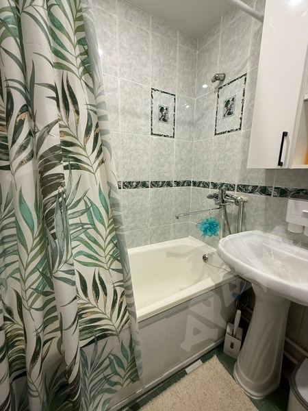 Санузел совмещенный, оборудован ванной и стиральной машиной. Балкон застеклен.