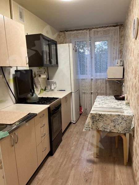 В квартире есть кухонный гарнитур, холодильник, стиральная машинка, диван, кровать. Квартира сдаётся на длительный срок (от года)